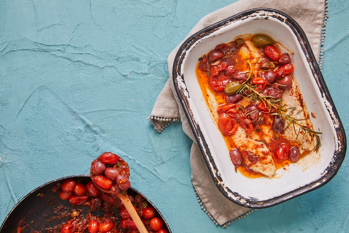 “If you haven’t yet paired fish with tahini, then you’re in for a real treat. This version combines tahini with herbaceous za’atar and sour sumac, our ever familiar but much treasured test kitchen staples. We strongly recommend using creamy, nutty tahini that’s sourced from countries within the Levant. Eat this shortly after cooking, as cooked tahini doesn’t sit or reheat very well.”