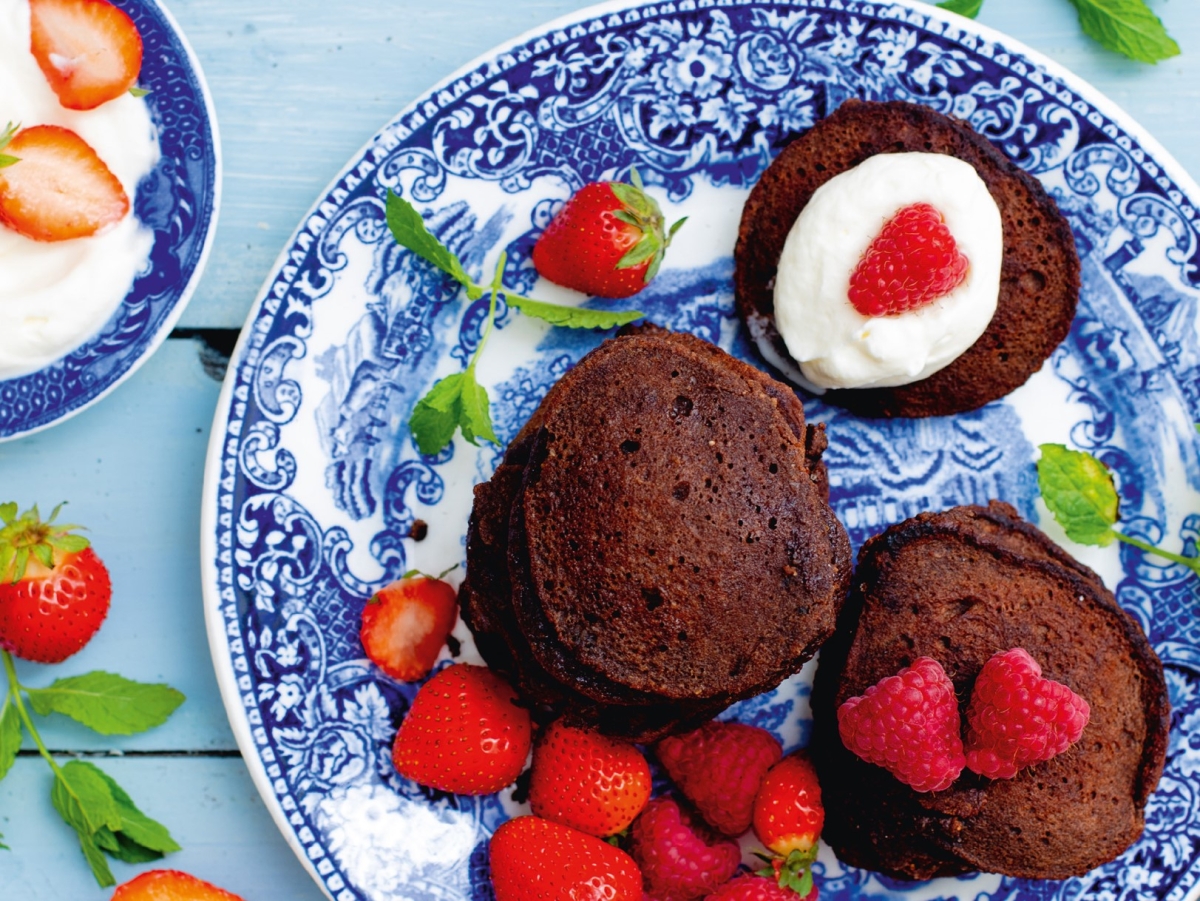 “These little flapjacks are quick to make and very versatile. Serve warm with whipped cream and berries.”