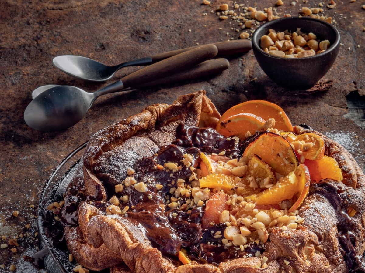 “Halfway between a pancake and a Yorkshire pudding, the Dutch Baby is puffy and crusty, yet soft and chewy. We’ve gone sweet on this one with an awesome complementary Darling Brew Black Mist pairing, though savoury options are also epic.”