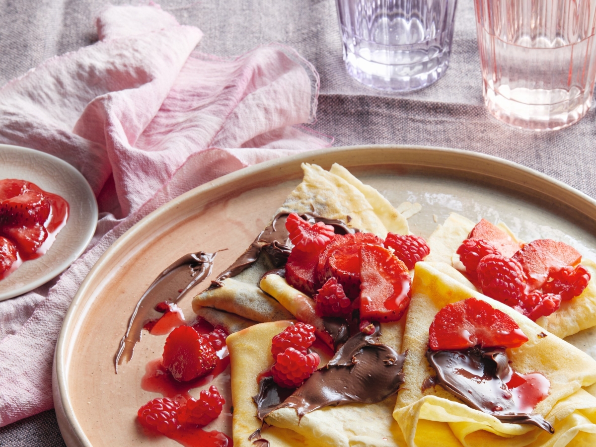 “If we find ourselves with an unhurried Sunday morning, this is our favourite-favourite family breakfast. Rob usually doubles the recipe and gets two pans on the go (and most of our other kitchen utensils!) to make as many of these as he can. Then we greedily gobble them topped either with the classic combination of lemon juice and cinnamon sugar, or lashings of Nutella and sliced strawberries and raspberries.”